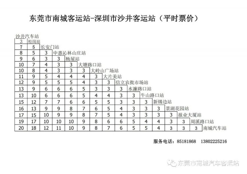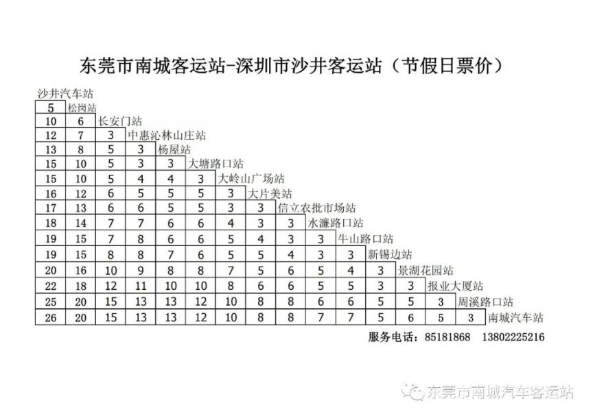 “莞深001线”票价设定
