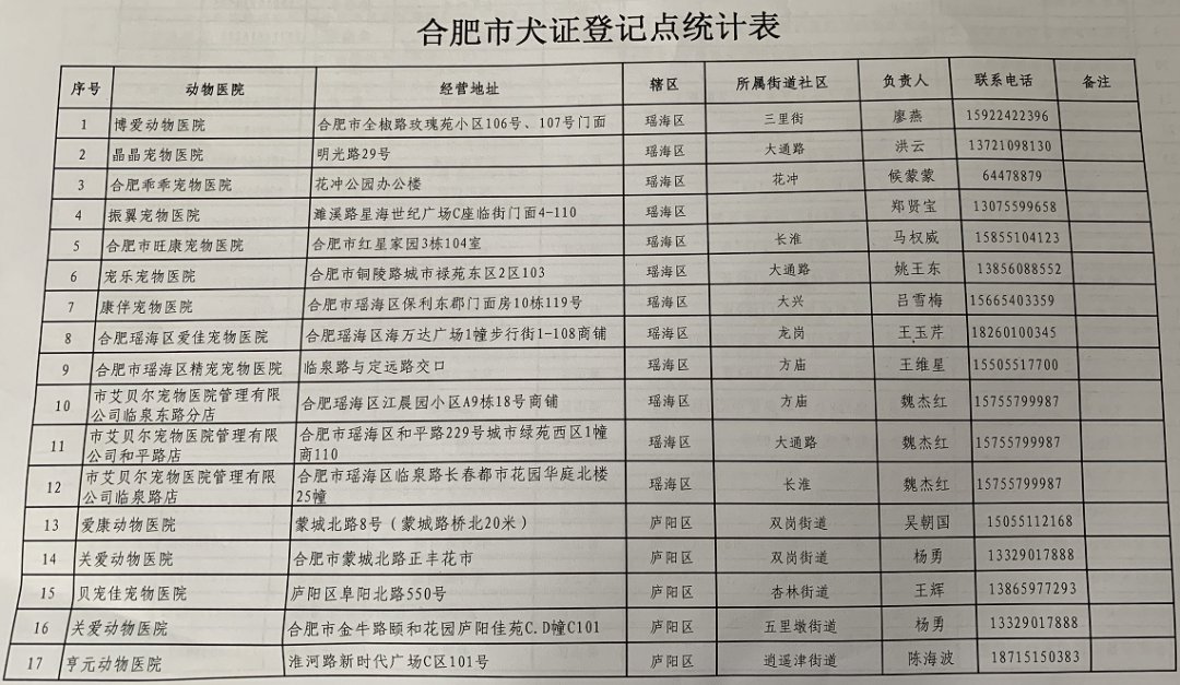 合肥市第一批57个养狗证登记点具体名单(合肥市第一批57个养狗证登记点具体名单有哪些)